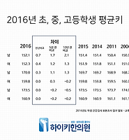 | 초,중,고등학생 연도별 평균키와 평균체중 살펴보기 (0) | 2018.01.10 |
