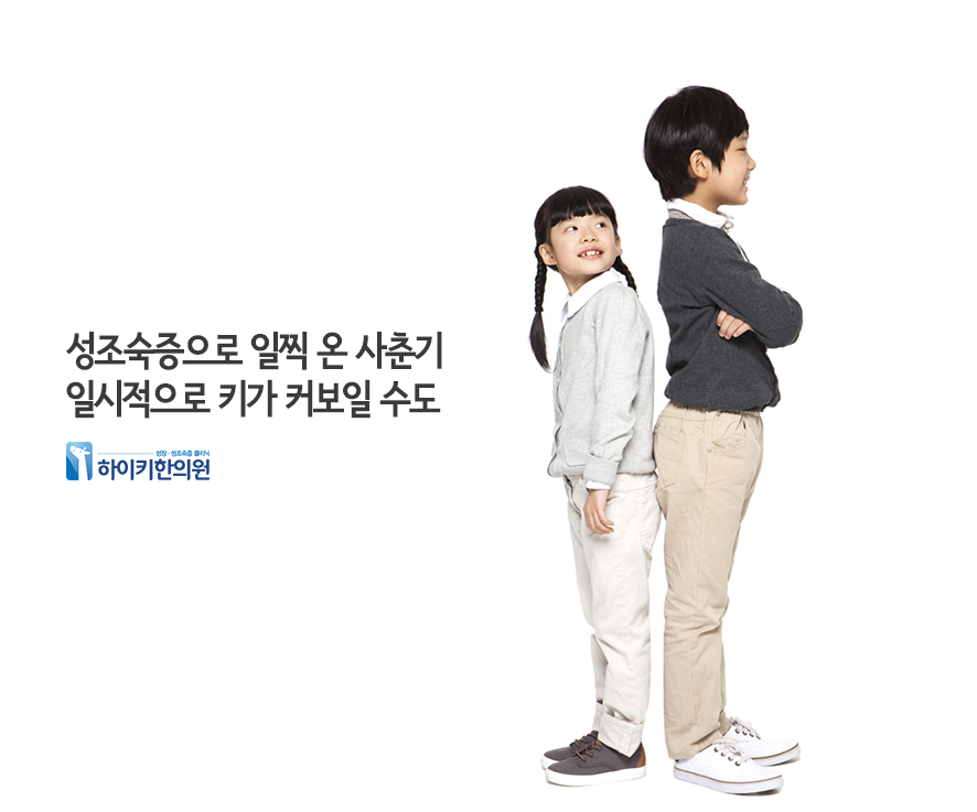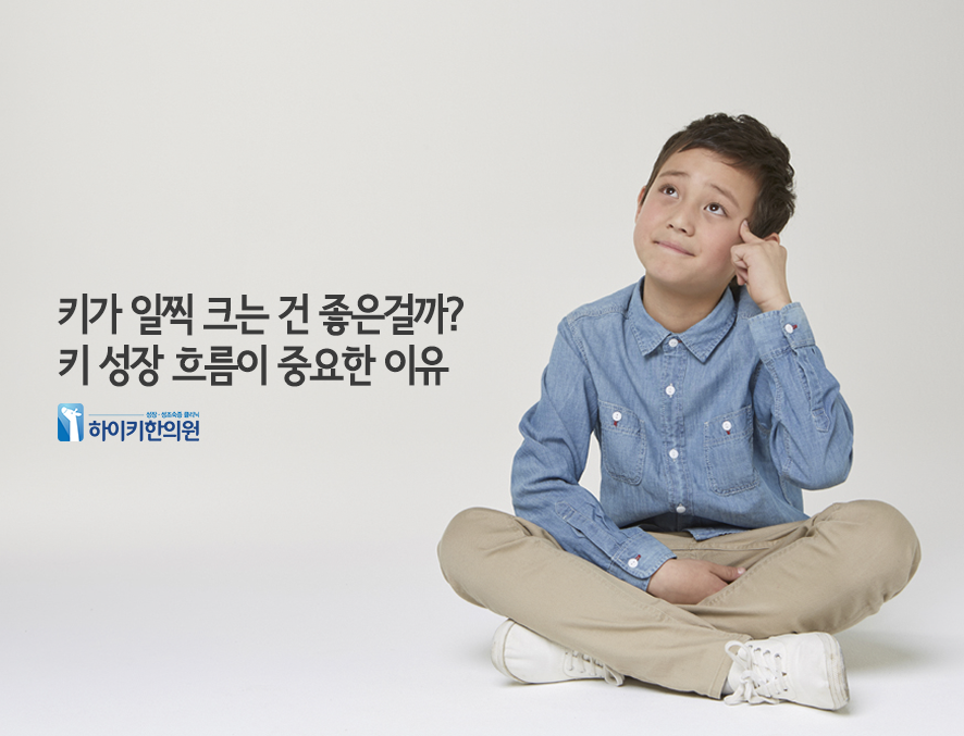 키가 일찍 큰다고 최종키가 클거란 보장은 없습니다. 오히려 이른 성장은 최종키 손실의 원인이 될 수 있습니다. 정말 가족력이나 여러 환경 요인이 작용해서 일찍부터 체격이 월등한 경우도 있으나, 이런 경우보다 우리는 '성조숙증'을 먼저 생각해야 합니다. 이른 사춘기 발달로 그저 성장기가 앞당겨져 키가 큰 걸로 보이는 착각에서 벗어나야 합니다.