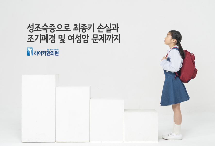 그런데 성조숙증이 단지 키 성장에만 영향을 주지 않습니다. 성조숙증은 아이의 건강과 정서 발달에도 영향을 줍니다. 특히 여자아이의 경우 이른 초경으로 인해 여러가지 문제를 겪게 될 수 있습니다.
