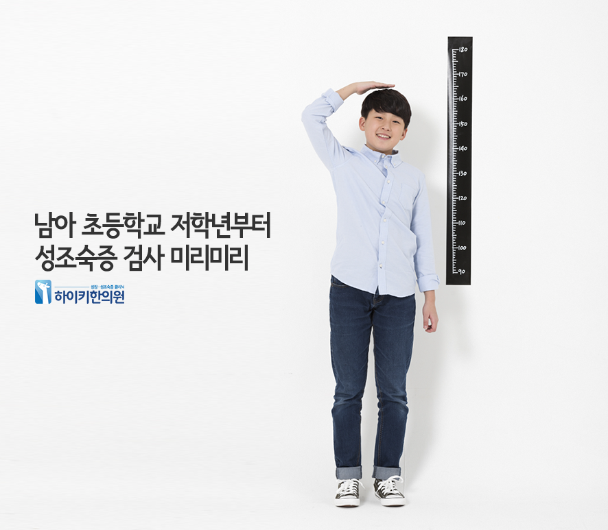 초등학교 입학할 무렵부터는 여아 남아 상관없이 성장검사와 함께 성조숙증 검사를 진행하는 것이 도움됩니다. 특히 남아의 경우 초기 발견을 못할 가능성이 있기 때문에, 초기 발견 자체가 아니라 아예 성장기에서 성조숙증 자체를 인지하지 못할 수도 있기 때문에 미리 관리를 해주시는 것이 좋습니다. 뒤늦게 성조숙증임을 알았더라도 시간을 되돌릴 순 없습니다. 그리고 아이의 키 손실도 되돌릴 수 없습니다.